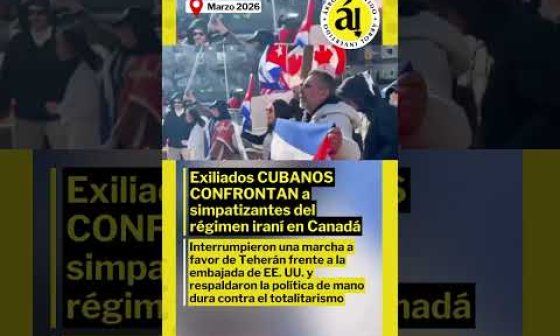 Al grito de "¡Comunismo es terrorismo!" los cubanos confrontan una manifestación de simpatizantes del régimen iraní frente a la embajada de EUA en Canadá.