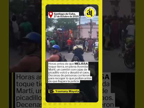 Un camión cargado con cajas de picadillo volcó en plena Avenida Martí, una de las arterias más transitadas de Santiago de Cuba, en plena Fase de Alarma Ciclónica, desatando una avalancha humana pocas horas antes de la llegada del huracán Melissa. El periodista independiente Yosmany Mayeta reportó el incidente este lunes 27 de octubre de 2025, mostrando videos de decenas de personas abalanzándose sobre el vehículo para recoger lo que podían antes de la llegada de la policía.