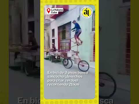 Un cubano recorre cada día 21 kilómetros entre los municipios de La Habana Vieja y La Lisa, en La Habana, sobre una bicicleta rústica de tres niveles, para transportar sancocho (comida para cerdos compuesta de desechos). Es una solución improvisada ante la gran escasez de transporte en Cuba en 2026. El vehículo artesanal le permite cargar varias tanquetas mientras cubre ese trayecto de ida y vuelta.