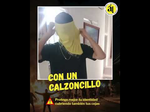 El video muestra una sucesión de recomendaciones concretas acompañadas de imágenes de protestas. Como se observa, la pieza explica cómo improvisar formas de proteger la identidad —por ejemplo, utilizando una camiseta para crear un pasamontañas— y advierte: "Protege mejor tu identidad cubriendo también tus cejas".
