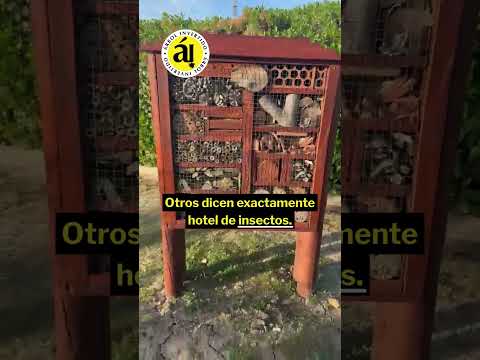 Como se ve en el video, el dispositivo está pensado para que "aquí puedan vivir los insectos", funcionando como refugio para abejas solitarias, mariquitas y otros polinizadores. Las imágenes muestran en detalle la composición del "hotel" y su señalización:
