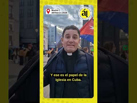 "Queremos reconstruir Cuba. Y ese es el papel de la Iglesia en Cuba: reconstruir Cuba para que los cubanos vuelvan a tener libertad, para vivir con dignidad", afirma el sacerdote cubano Bladimir Navarro durante la manifestación del exilio celebrada el 28 de febrero de 2026 en el centro de Madrid como parte de la Jornada internacional de manifestaciones por una Cuba Libre, convocadas en más de veinte ciudades del mundo.