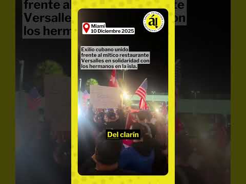 Cubanos del exilio reunidos frente al restaurante Versalles, en Miami, cantan el Himno Nacional de Cuba este10 de diciembre, Día Internacional de los Derechos Humanos. El encuentro, parte de una convocatoria global por la libertad de la isla, muestra a personas de distintas generaciones levantando banderas al grito de “Viva Cuba libre”, una escena que reafirma la continuidad de las reivindicaciones políticas de la diáspora.