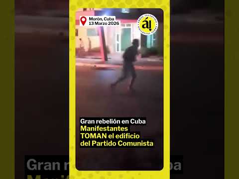 Manifestantes toman la sede del Partido Comunista de Cuba (PCC) en la ciudad de Morón, provincia de Ciego de Ávila, durante la noche del 13 de marzo de 2026, un hecho sin precedentes desde 1959, en medio de una jornada de cacerolazos y protestas masivas contra el régimen y la profunda crisis en que gha sumido al país. Tras marchar por las calles, los manifestantes irrumpen en el edificio, arrojan muebles y pancartas a la vía pública y les prenden fuego.